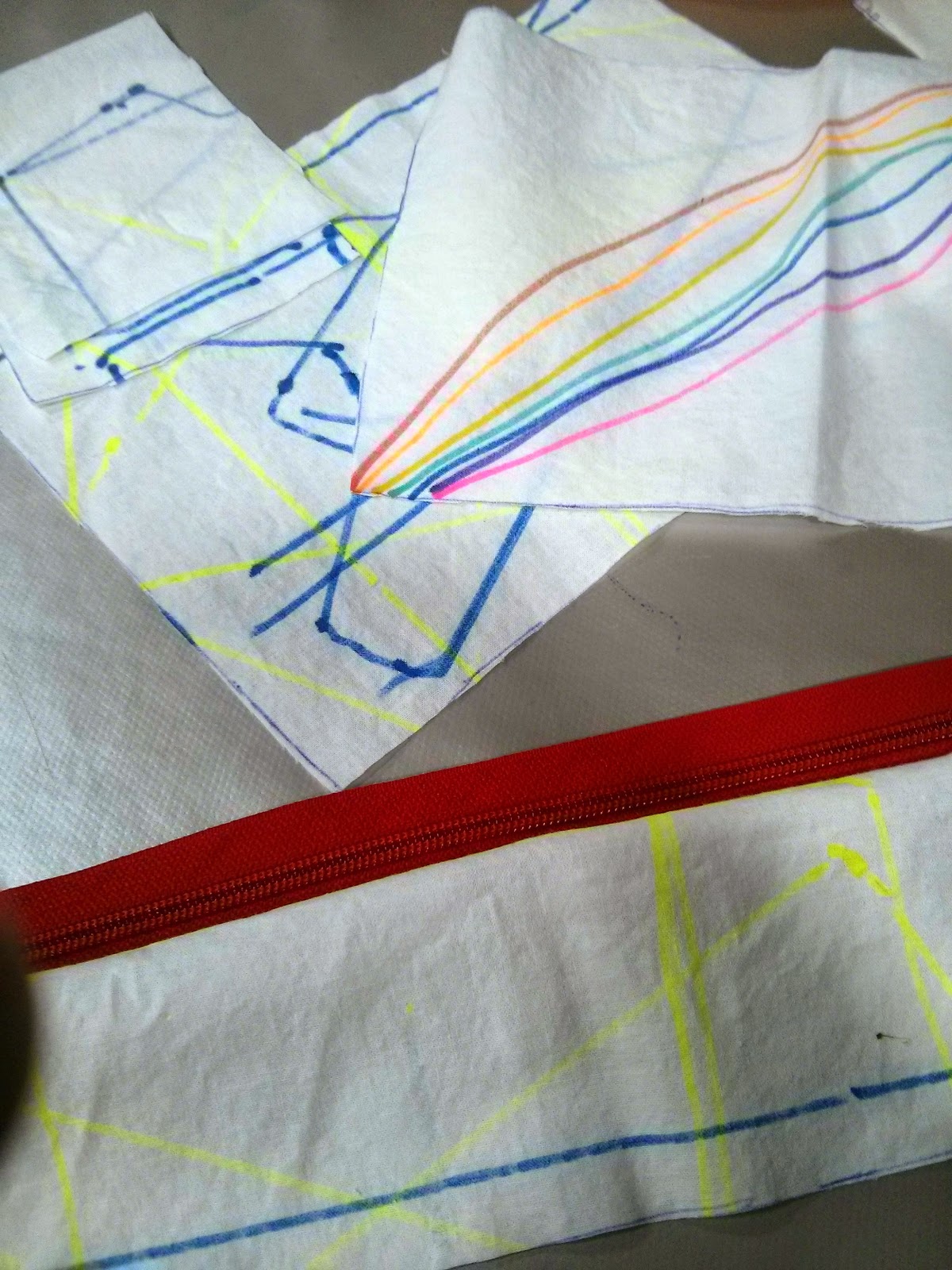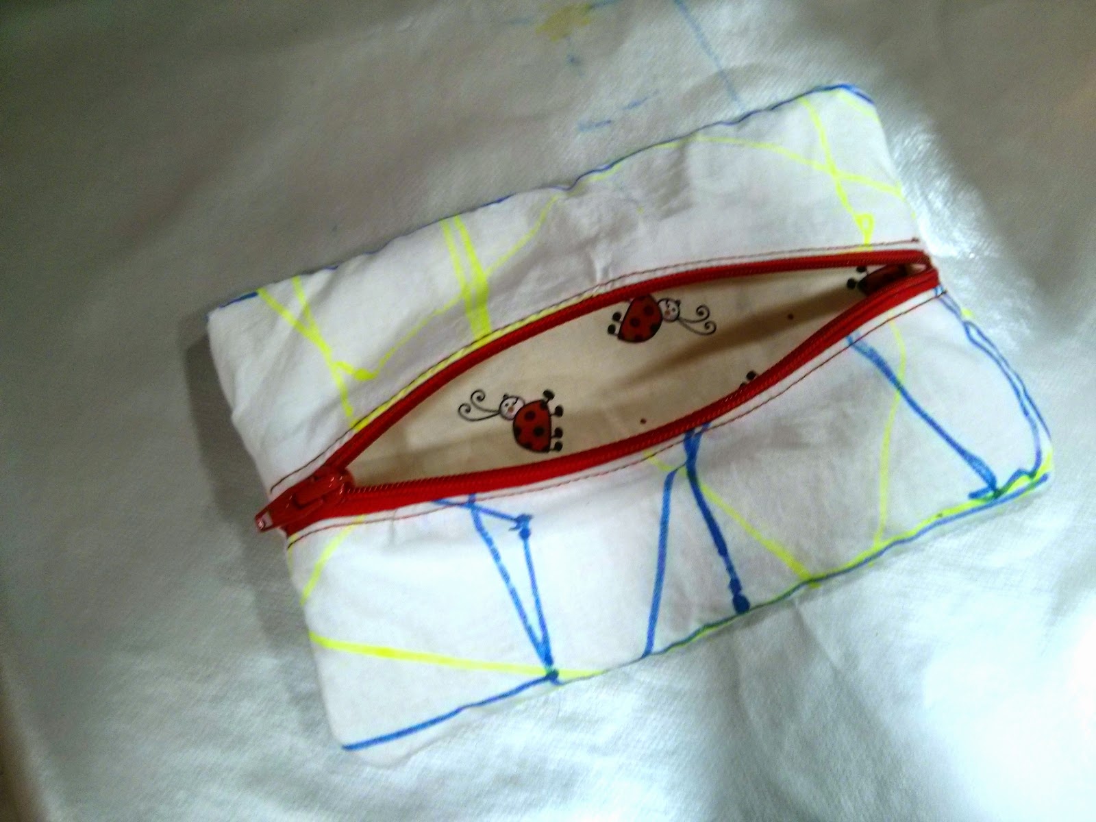 Y ya con la tela pintada y planchada....elegí los retales mas molongos para el estuche.... Hicimos 4, pero no me acordé de sacar fotos... :-(